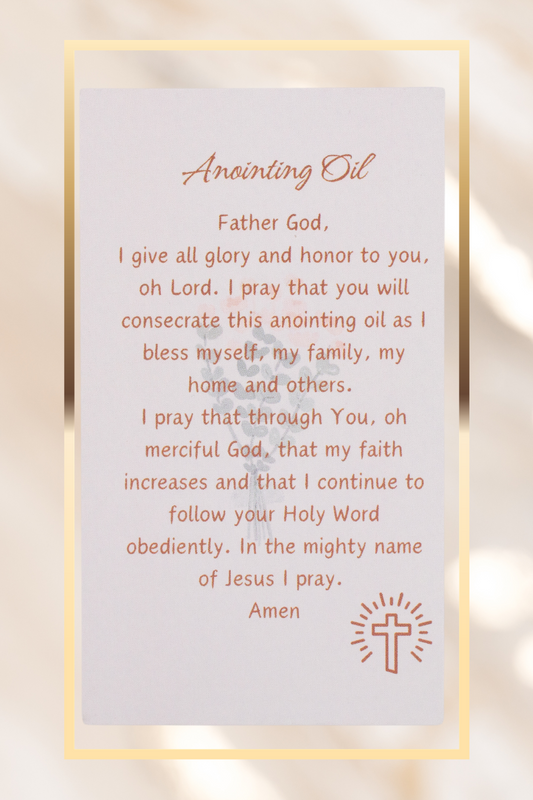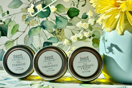 Our anointing oils are prayerfully crafted to bless your life and surroundings—whether it's yourself, loved ones, your home, workspace, or any space in need of spiritual covering. Rooted in faith and guided by God's Holy Word, these oils are a simple yet powerful tool to activate blessings and declare His promises.